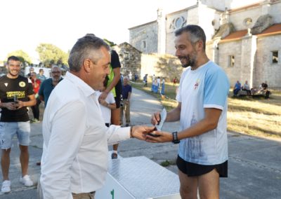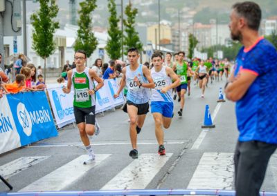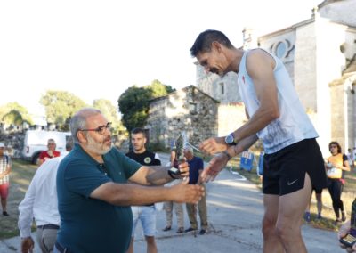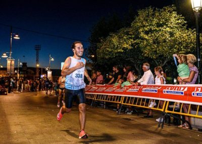 Pasadas as 19:00 arrancaría a proba absoluta, con dúas voltas de case 4km cada unha, primeira volta cun numeroso grupo en cabeza, o cal se comezaría a estirar a partir do km 3 cando Nico Domínguez aumentou o ritmo levando con el a Iván Fernández e ao noso Amador Pena, que tras pasar a liña de meta tensou a corda e se quedou en cabeza cuns metros de vantaxe adquiridos na longa baixada de terra do primeiro km de cada volta, o corredor do Rías Baixas, especialista en medio fondo, contactou con Amador na subida máis dura, e foron man a man ata o último km donde os dous habituais de probas en pista de medio fondo, exprimiron os seus cartuchos nun apaixoante final que caiu do lado do noso atleta un ano máis, i é que cabe resinar que Amador xa gañara tamén a primeira edición desta carreira nada menos que fai 8 anos, e como anécdota curiosa, fixérao coas mesmas zapatillas que utilizou o pasado Sábado.